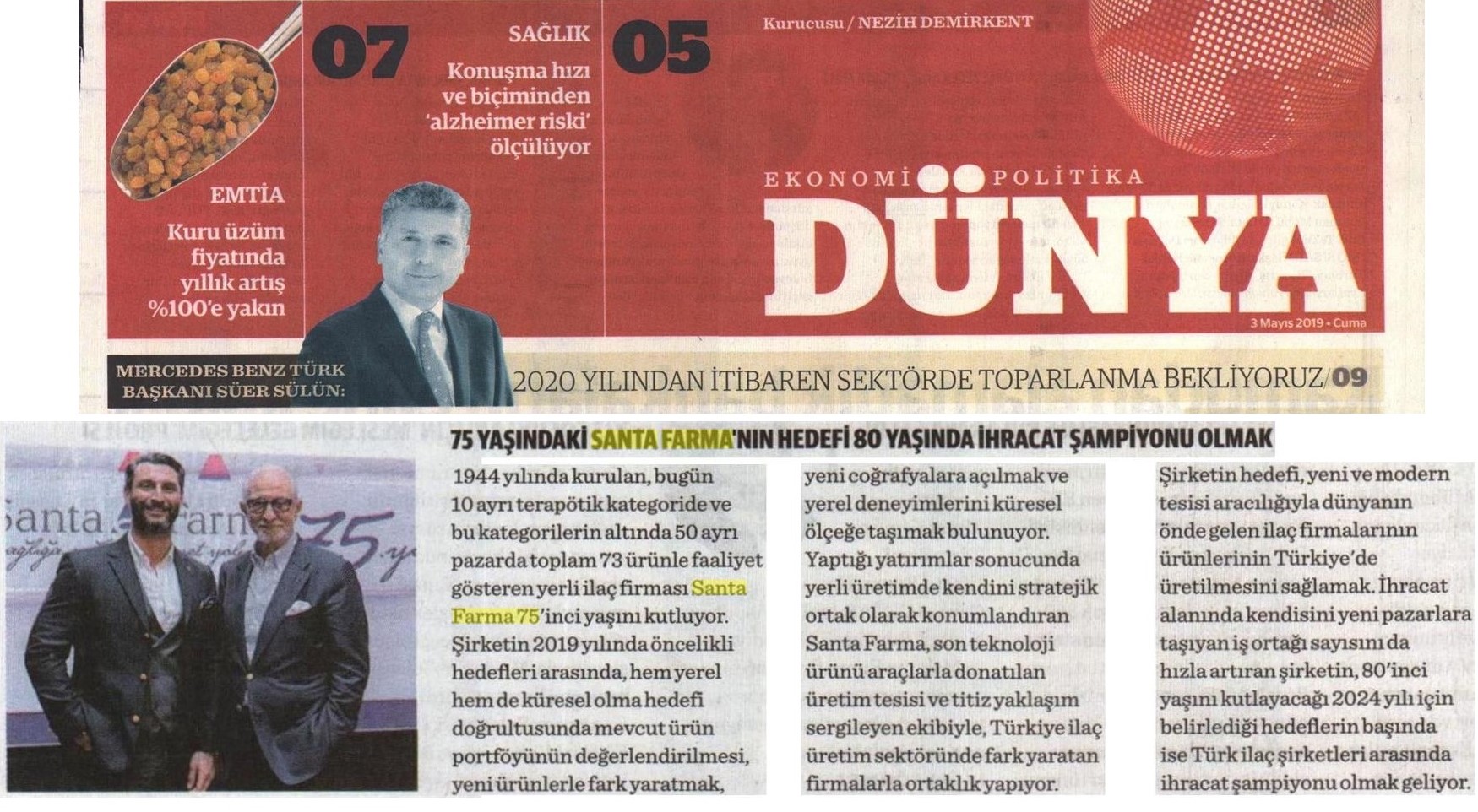 75-Year-Old Santa Farma Aims to Become the Champion of Export in its 80th Anniversary, Dünya Newspaper