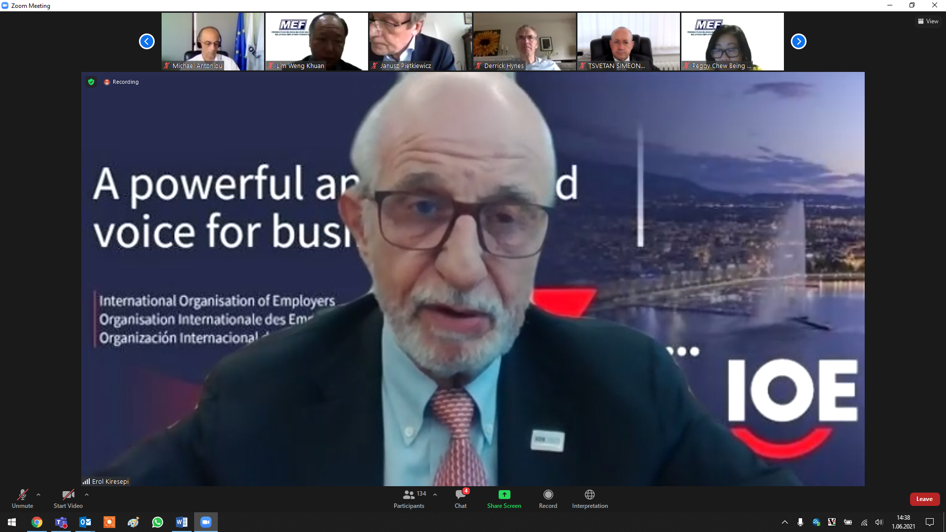 Having led the International Organisation of Employers (IOE) for 4 years till the conclusion of his tenure on June 1, 2021, Erol Kiresepi has been elected as the ‘Honorary President of IOE’ at the Organisation’s General Council to be effective as of June 1, 2021.