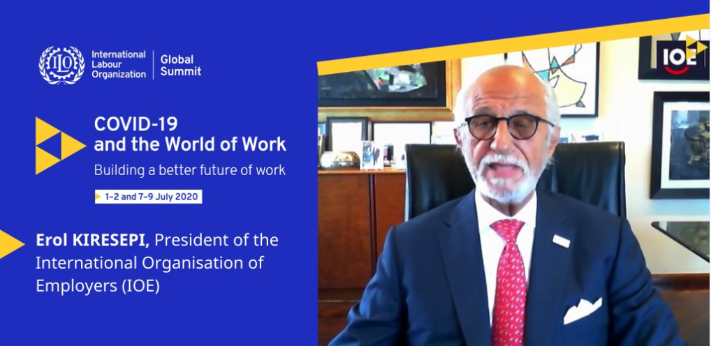 Mr. Erol Kiresepi, President of the International Organization of Employers (IOE) and the Chairman of the Board of Santa Farma Pharmaceuticals, delivered a speech representing world employers at the COVID-19 and Global Business Life Summit, held live on 8 July 2020, by the International Labor Organization (ILO), where leaders from 60 countries participated as speakers.