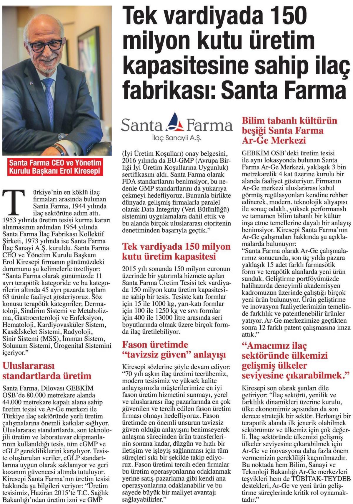 Hürriyet gazetesi 5 Nisan 2017 tarihinde, Santa Farma haberine yer verdi.