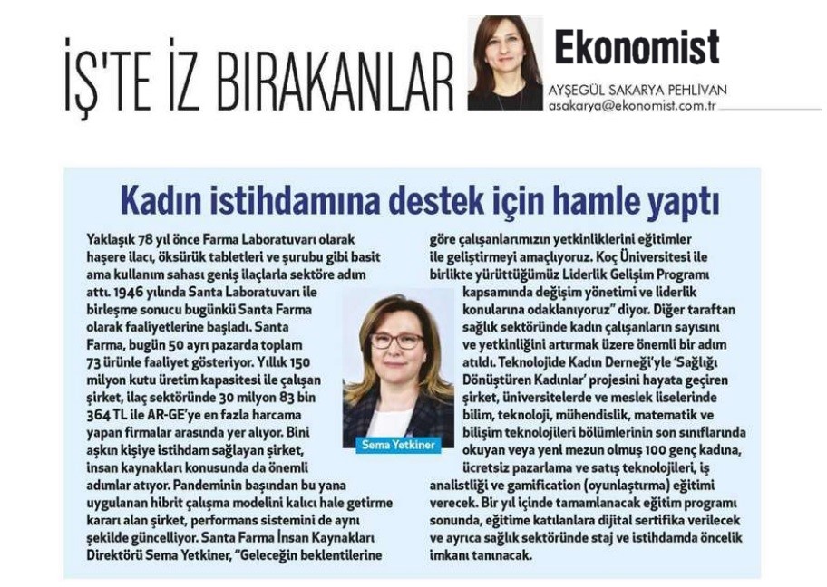 Santa Farma’s Human Resources Director Sema Yetkiner said, “We aim to improve competence of our employees through training programmes customized for responding to requirements of the future. We focus on change management and leadership under the Leadership Development Programme undertaken in cooperation with Koç University.” Having launched the ‘Transforming Women of Health’ project to support employment of women, Santa Farma Gamification, Marketing and Sales Technology and Business Analyst training to 100 young women in collaboration with Women in Technology Association. Trainees will be awarded a digital certificate along with internship and employment opportunity in healthcare industry at the end of the one-year training programme.