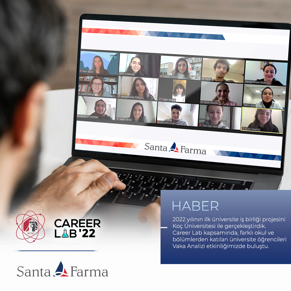 Santa Farma tarafından verilen vakayı projelendiren ve hazırladıkları sunum ile aktaran gruplar; İnsan Kaynakları Direktörümüz Sema Yetkiner, İnsan Kaynakları Müdürümüz Merve Karaca Gezer, Santa Farma Akademi Koordinatörümüz Nerim Özevren ve İnsan Kaynakları Uzmanımız Tuba Çolakoğlu'ndan geribildirim aldılar. Etkinlik sonrasında tüm katılımcılara sürpriz hediyeler verilirken, birinci seçilen iki gruba da Etkili Sunum Teknikleri Eğitimi hediye edildi. #SantaFarma #KocUniversity #AIChEKocUni #CareerLab22