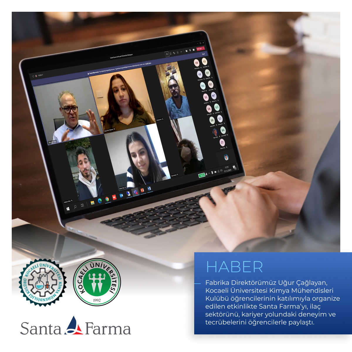 Üniversite buluşmalarımız Kocaeli Üniversitesi ile devam ediyor. Fabrika Direktörümüz Uğur Çağlayan, Kocaeli Üniversitesi Kimya Mühendisleri Kulübü öğrencilerinin katılımıyla organize edilen etkinlikte Santa Farma’yı, ilaç sektörünü, kariyer yolundaki deneyim ve tecrübelerini öğrencilerle paylaştı.