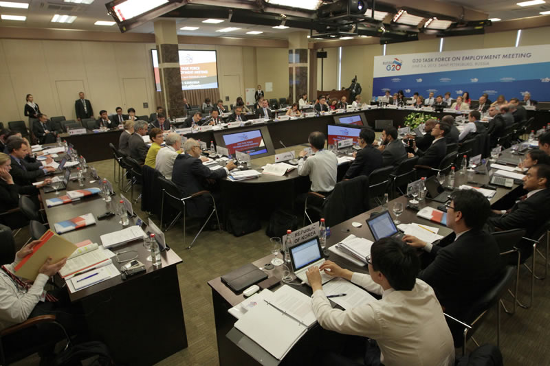 G-20 İstihdam Görev Gücü ikinci toplantısı 03-04 Haziran 2013 tarihlerinde Rusya'nın Saint Petersburg şehrinde gerçekleştirilmiştir. Yönetim Kurulu Başkanımız, TİSK Dış İlişkiler Komisyonu Üyesi ve B20 İstihdam Görev Gücü Eş Başkanı Sn. Erol Kiresepi, G20 İstihdam Görev Gücü toplantısında Uluslararası İşverenler Teşkilatı'nı (IOE) temsil etmiştir. Sn. Kiresepi, gerçekleştirdiği konuşmasında, işsizlikle mücadelenin geliştirilmesi ve işletmelerin büyüyerek istihdam yaratabilmesi amacıyla uygulanması gereken politika ve tedbirlere, işletmelerin nitelikli işgücü, bireylerin hayat boyu öğrenme ihtiyaçlarını karşılayarak işçilerin istihdam edilebilirliklerini ve mobilitesini artıran eğitim sistemlerine ilişkin görüşlerini dile getirmiştir. Sn. Kiresepi aynı zamanda, işletmeler ve girişimciler için uygun ortam yaratılmasının ve demografik değişimleri yönetmenin önemini vurgulamıştır.