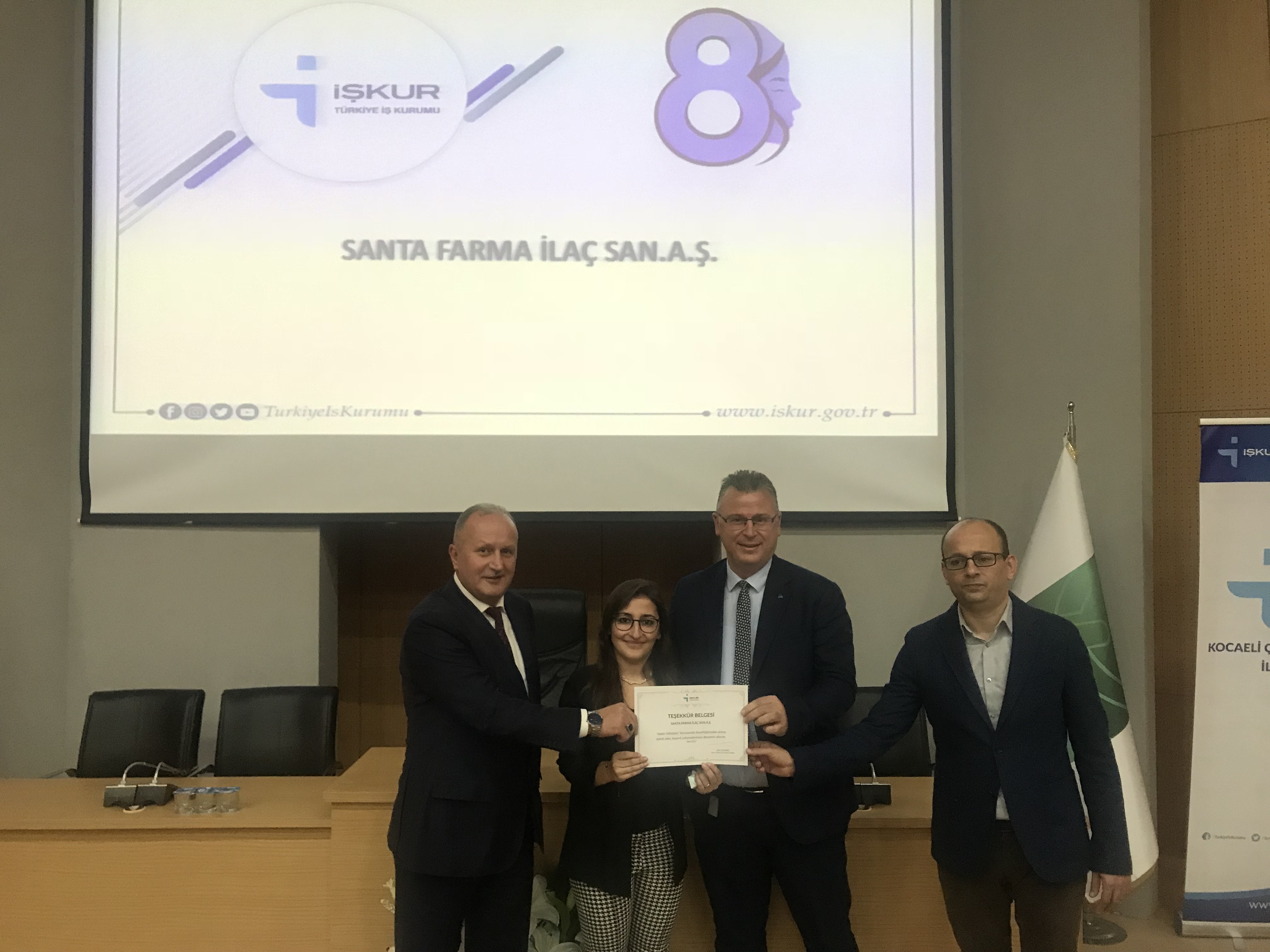 İşkur tarafından düzenlenen "Kadın İstihdamı" konulu Kadınlar Günü etkinliğinde, kadın istihdamı konusundaki başarılı çalışmalarımızdan dolayı, teşekkür belgesi almaya hak kazandık.