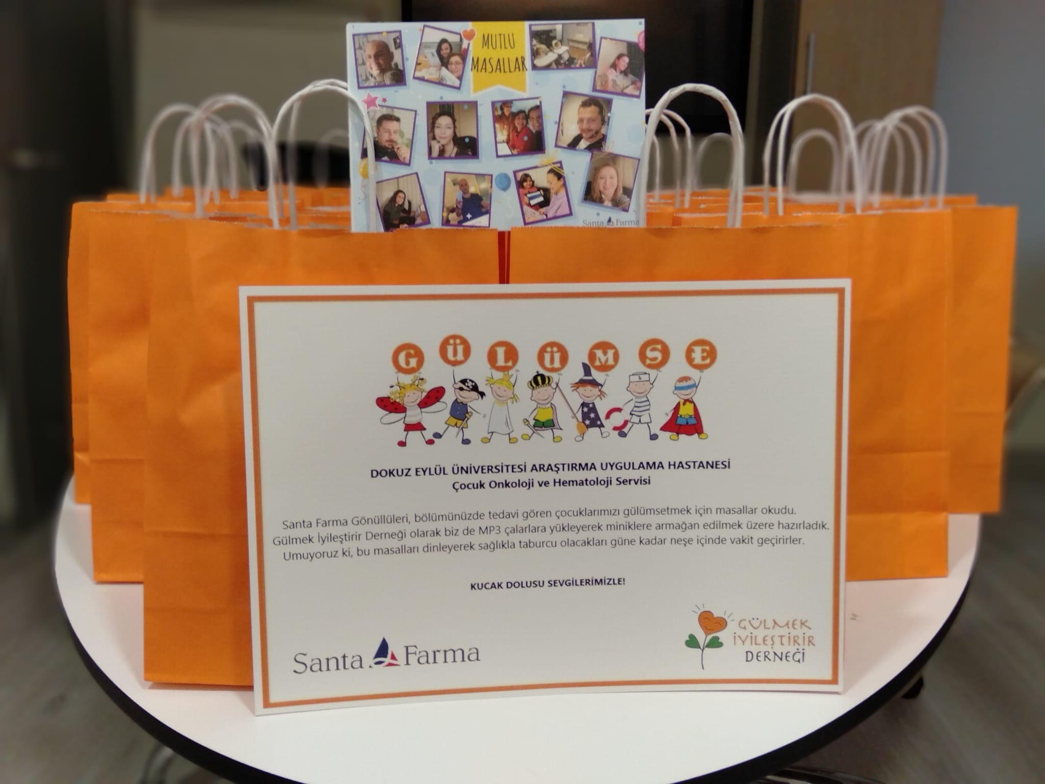 Gönüllü 50 Santa Farma çalışanı psikolog onaylı 125 masalı, kanser tedavisi gören çocukların uzun süreli yatış dönemlerinde mutlu masalların iyileştirme gücünden yararlanması amacıyla evlerinde seslendirdi.