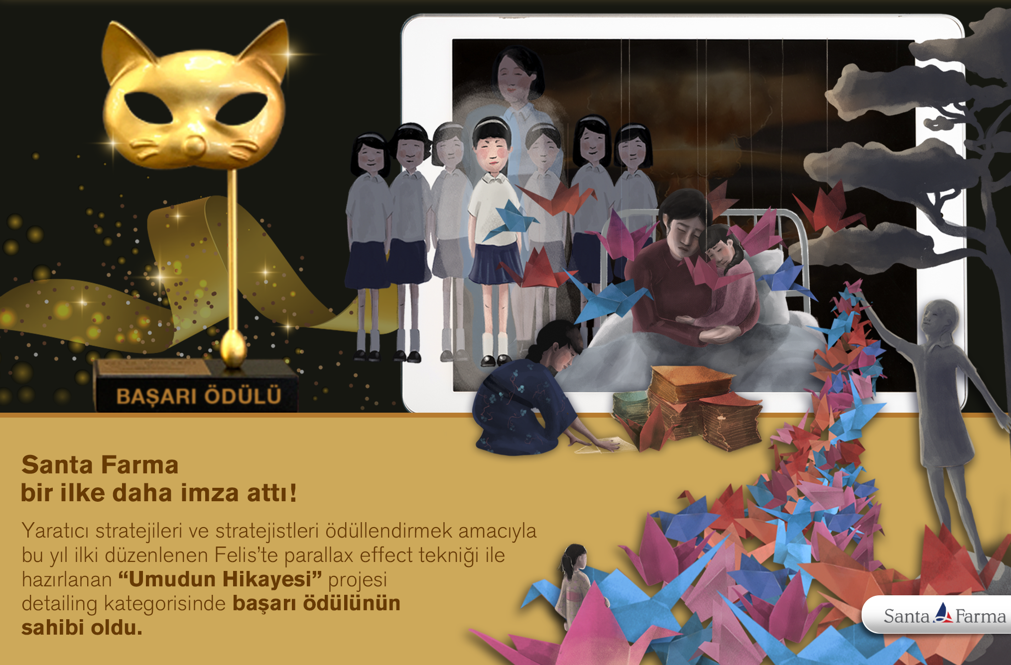 Santa Farma İlaç, “Umudun Hikayesi” projesinde hekimleri farklı bir yolculuğa çıkarmak amacıyla, daha önce deneyimlemedikleri bir yöntemle hazırladığı ürün hikayesinde “Umudu Kaybetmeme” mesajını vermeyi hedeflemişti. Bu mesajı iletmek için ise gerçek yaşamdan bir hikayeyi odağına almıştı. Hikayede 2. Dünya Savaşı’nın önemli sembollerinden Sadako Sasaki’nin Hiroşima’daki mücadele dolu hikayesi anlatıldı.