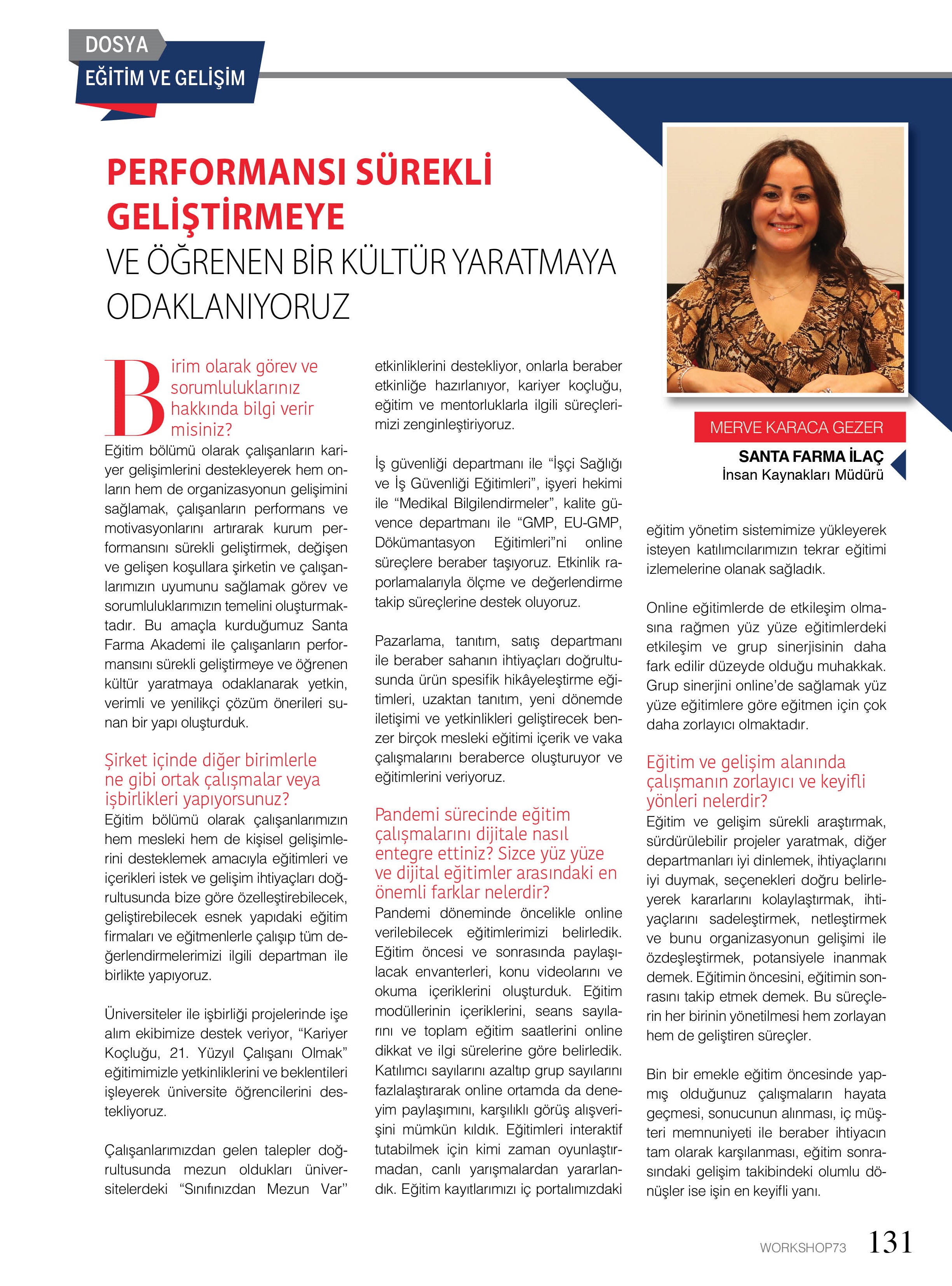 Workshop dergisi Eğitim ve Gelişim dosya konuğu İnsan Kaynakları Müdürü'müz Merve Karaca Gezer oldu.